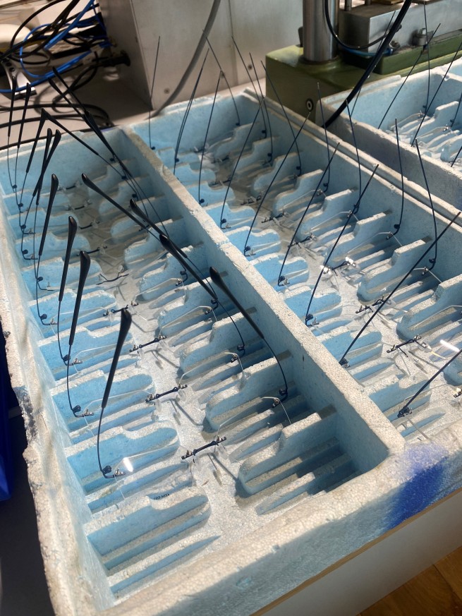 Jetzt geht es noch einmal ein Modell rückwärts, denn heute sind die Bügel des ersten Modells fertig aus der vierten Trommel (zweites Polieren) gekommen.