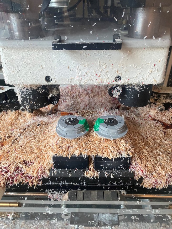 Wir fräsen jedenfalls gerade für ein weiteres Modell Mittelteile in den Farben havanna und rot-verlauf