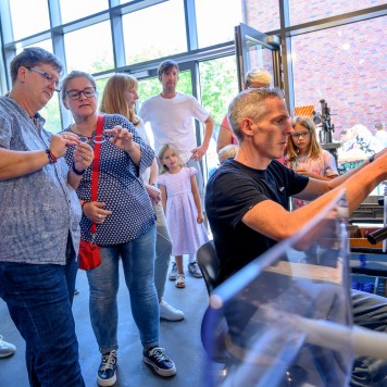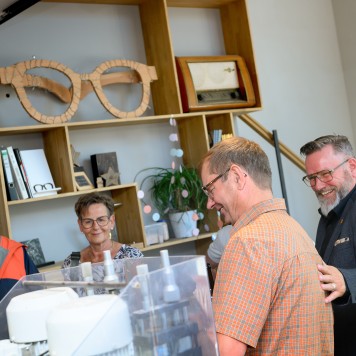Am 16.09.23 haben wir wieder unsere Türen weit aufgemacht und ca. 120 Gäste in Münster zu unserer "Hausmesse" Sturmfrei begrüßen können. Neben interessanten Workshops zum Thema Farben und Lacke auf Brillenfassungen und Marketing haben wir auch kleine Aufsteller für Sonnenbrillen zusammen hergestellt. Und selbstverständlich gab es den ganzen Tag über die Gelegenheit unsere Produktion im Brillenbau live zu erleben.