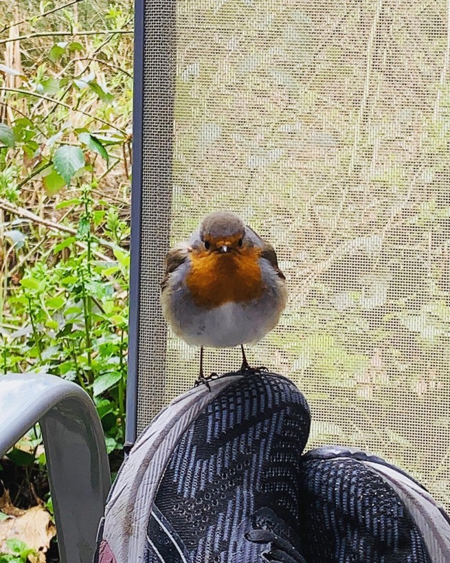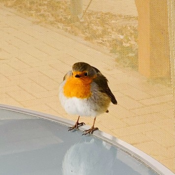 Seit einiger Zeit verbringen wir unsere Mittagspausen regelmäßig mit diesem süßen Vögelchen. Ronny besucht uns jeden Tag um die gleiche Zeit und wird immer zutraulicher.